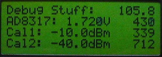 The firmware has a one step auto calibrate feature, you calibrate against a known reference somewhere between -8 and -20dBm.  Dial in the actual power with the rotary encoder, and then press the select button. Calibration consists of two consecutive and fully automatic measurements, one direct and another one with the 30dB "first" attenuator switched into the circuit in front of the AD8317.
