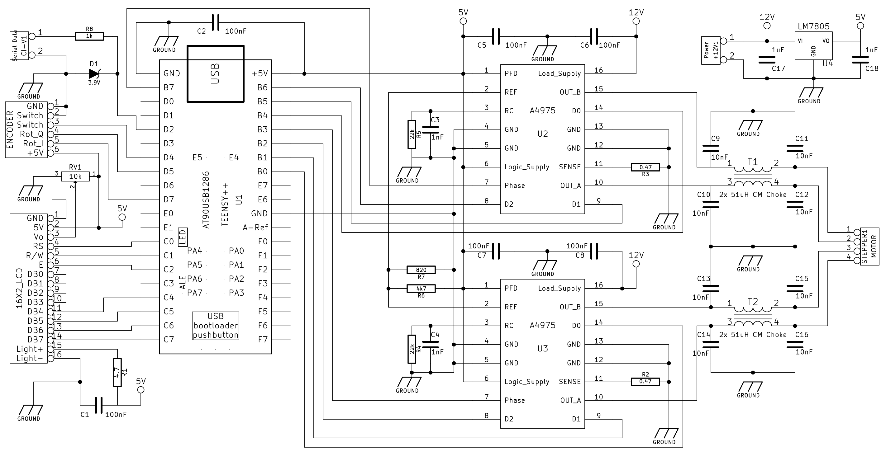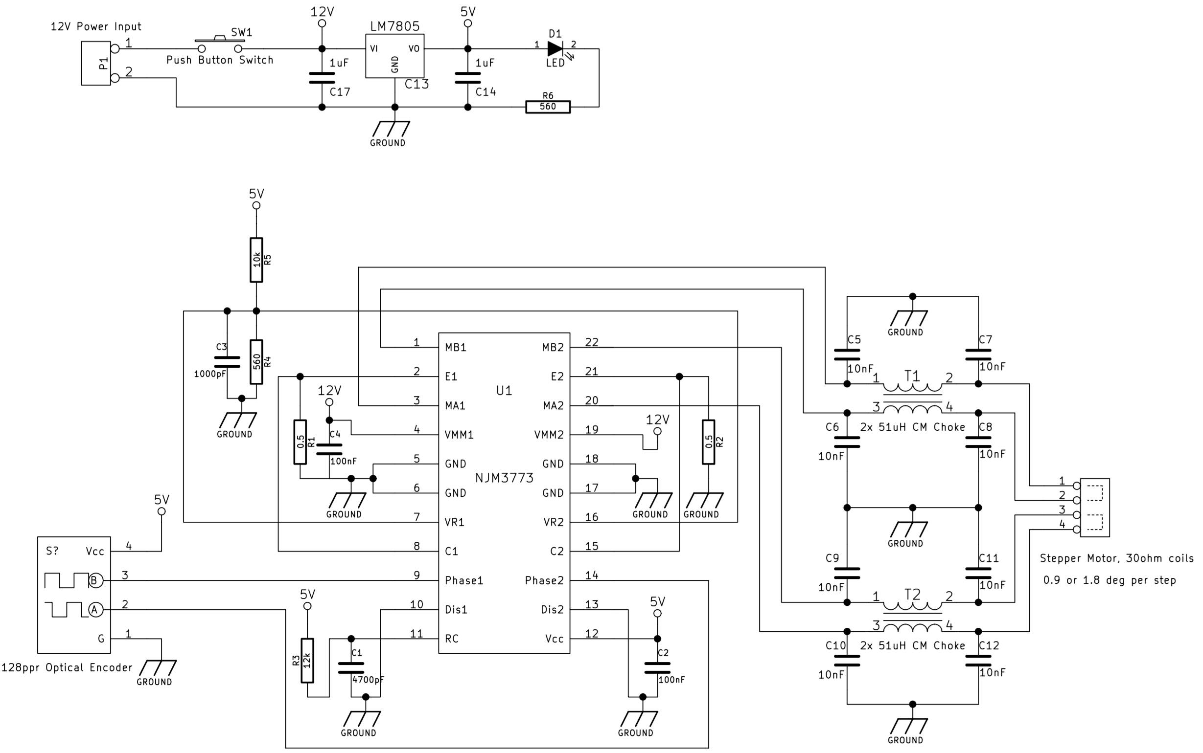 This is the stepper motor control circuit. Â A simple push switch to activate and a 128 ppr optical encoder to tune:
